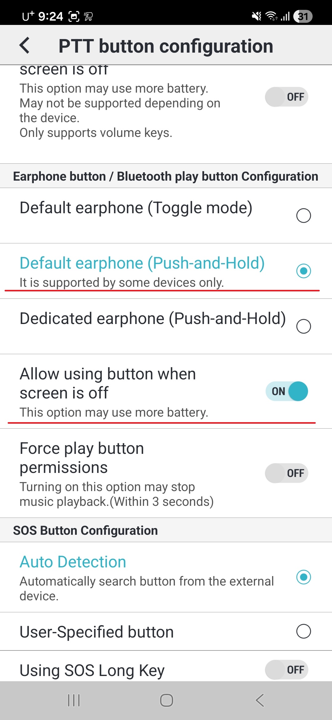 To use VoicePing PTT Earpiece USB C - Earbuds in Android and Embedded app, you need to confiure the PTT button option first.