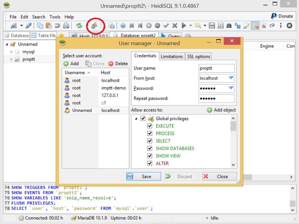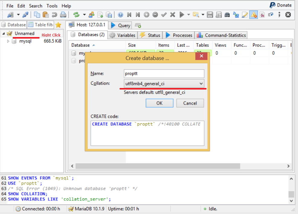 Create a database for ProPTT2. Please select a collation option utf8mb4_general_ci.