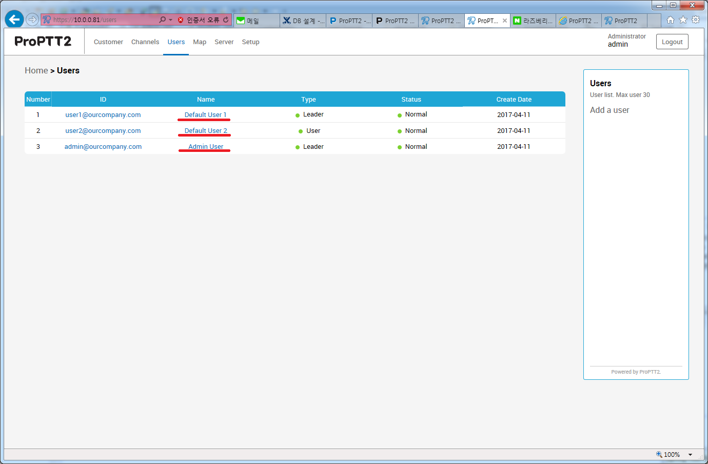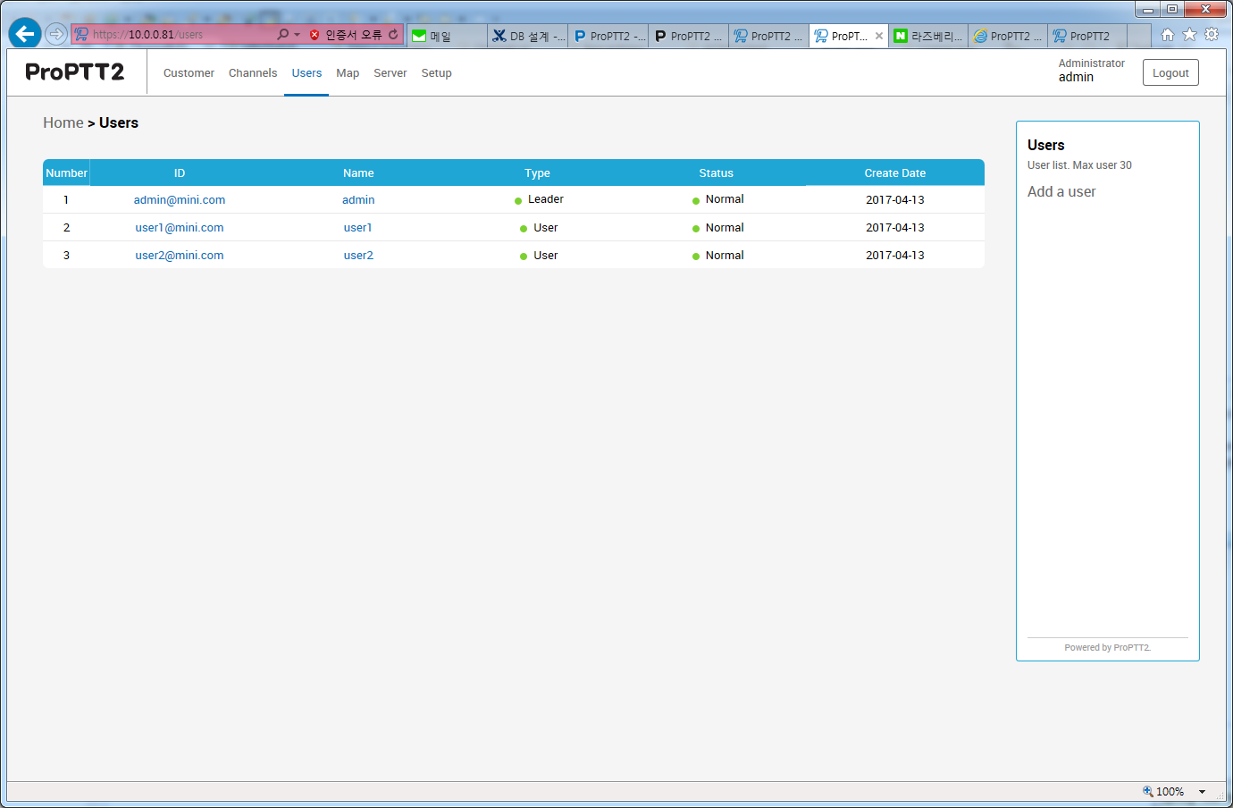 And add users at users page.