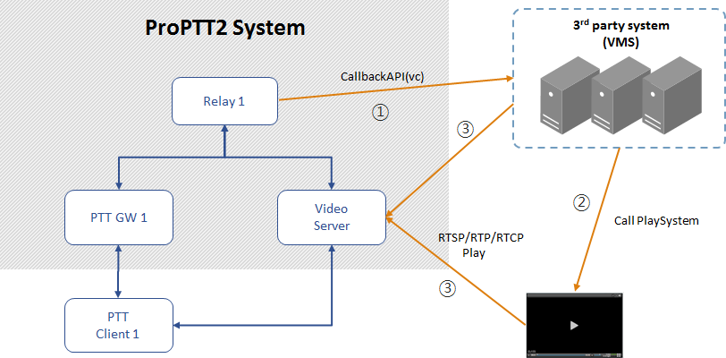 ProPTT2 server package(2.1.0~) support RTSP. 3'rd party system can integrated with ProPTT2 server through RTSP.